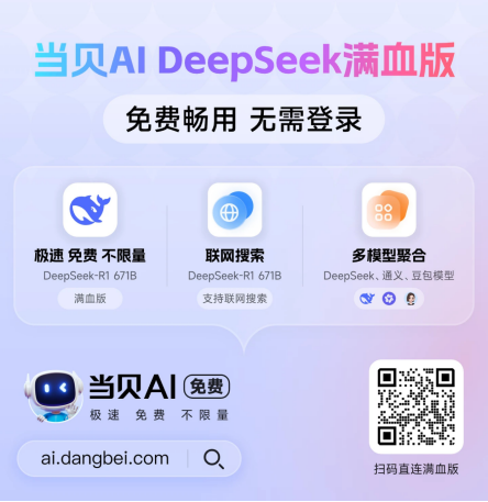 当贝AI深度融合DeepSeek-R1 671B满血版、豆包、通义千问等顶尖大模子,实正做到了“你的设法,无论是查材料、写案牍。