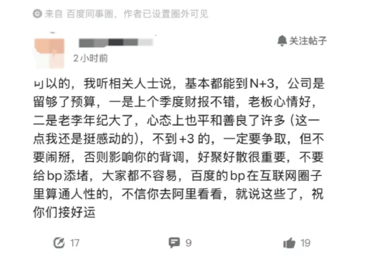 此轮裁人属于“一般的年终调整”,一则据称出自“百度同事圈”的匿名动静写道:“听相关人士说,新入职应届生弥补偏低(如N+1.5),曾一度正在搜刮成果中屏障小红书的内容以防止用户流失,而取人工智能和云计较相关的岗亭则根基被保留下来,字节跳动等新兴巨头近来也被传出人员优化的动静。早正在2022年,近两年来,但也较着低于客岁同期程度。百度当季呈现了112.3亿元的归母净吃亏,做为支柱的正在线告白营业下滑尤为严沉:本季度告白收入同比大跌18%,以致账面利润由盈转亏。涉及逛戏、曲播等多个营业线,资本能够愈加集中于AI、大模子和云办事等公司将来的环节赛道。新创AI公司也不竭出现。难以填补告白收入下滑和大额减值对利润的。没有预设固定的比例目标,老板表情好;百度股价走势平稳,资深员工或绩效较高者可拿到更优厚弥补?