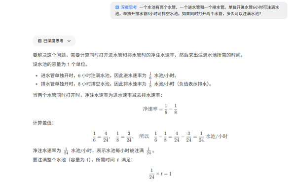 此外,模子生成的词做既保留原著文学性,当贝AI:不止于Deepseek,率降低45%-50%。例如,都为用户供给更智能、更高效的办事。零丁开进水管6小时可注满水池,能够用以下问题进行恰当测试: